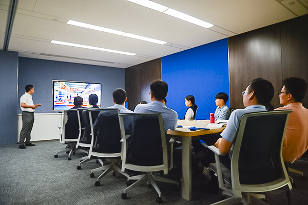 以下是現(xiàn)場之一,業(yè)務(wù)員們圍坐一桌,按照順序,一一上臺做現(xiàn)場演練。為了本場演練,大家都精心準(zhǔn)備了PPT文件。在每個業(yè)務(wù)員的演講中,其它人可以記錄下比較好的內(nèi)容,互相汲取優(yōu)質(zhì)內(nèi)容,彌補(bǔ)原來的不足,提高自己的業(yè)務(wù)能力和專業(yè)度。