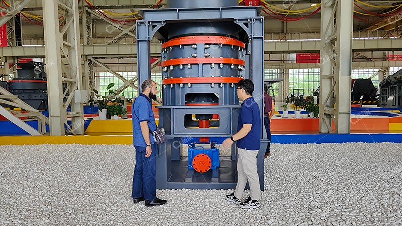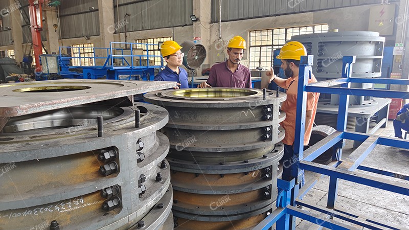 展廳參觀之后,朱經(jīng)理又帶領(lǐng)客戶來到我們的磨粉機生產(chǎn)車間,以磨輥和磨環(huán)為例,向客戶詳細介紹了超細磨粉機的易損件都有哪些,以及易損件的保養(yǎng)維護方法和使用技巧是什么。